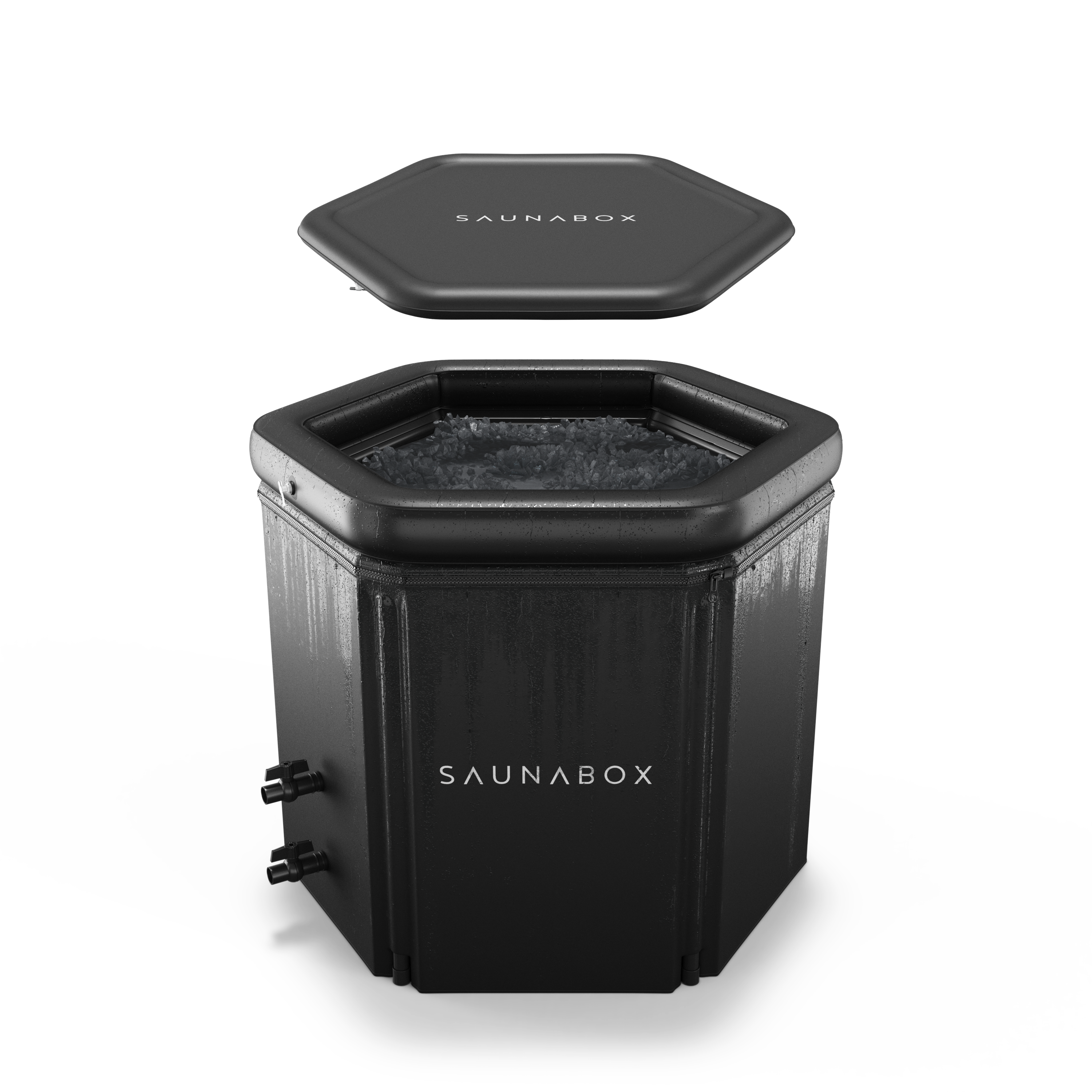 Introducing the new PlungeBox PRO, the next generation of cold tubs from SaunaBox. Meticulously redesigned for superior performance and comfort, the PlungeBox PRO features an innovative hexagonal shape for enhanced insulation, unmatched portability, and water chiller compatibility - making it the ideal addition to your wellness routine.