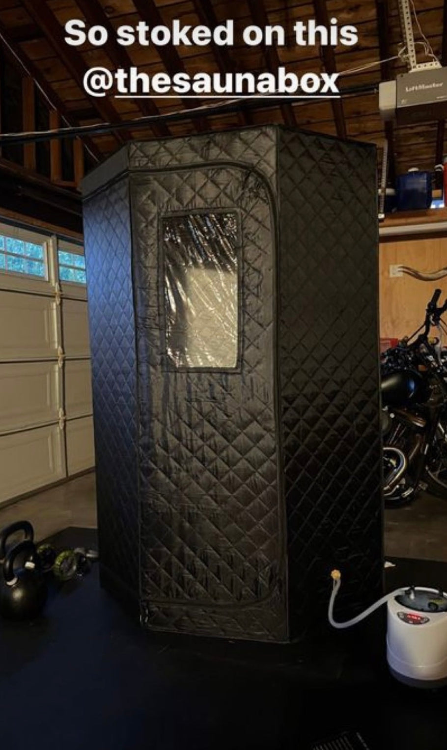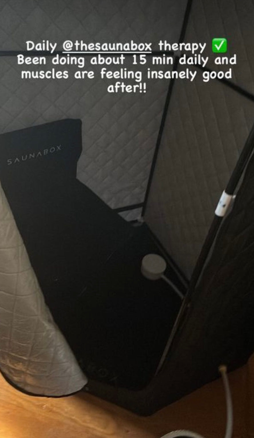 "Nothing better than getting home after a long day and jumping in the sauna! Shoutout SaunaBox! It got me sweating in no time for an evening sweat."